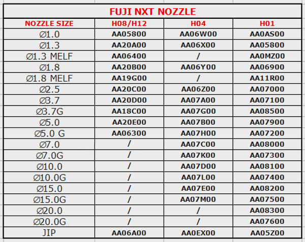 Flason SMT CAN SUPPLY OTHER FUJI NOZZLE AS FOLLOWS:
